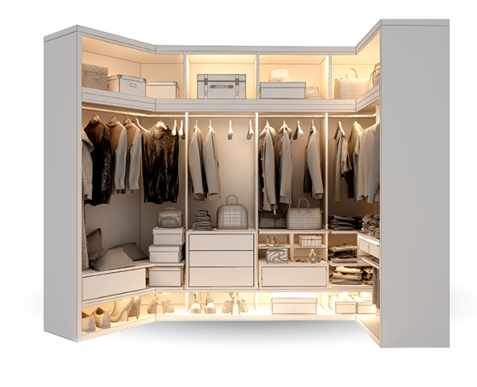 Closet Xperts counts with best in industry equipment, materials and a highly experienced staff. Also the use of rendering software is highly used in order to plan and visualize closet designs. This not only allows customers to know how their closet will look before manufacturing starts but also allows for experimentation and extensive customization.